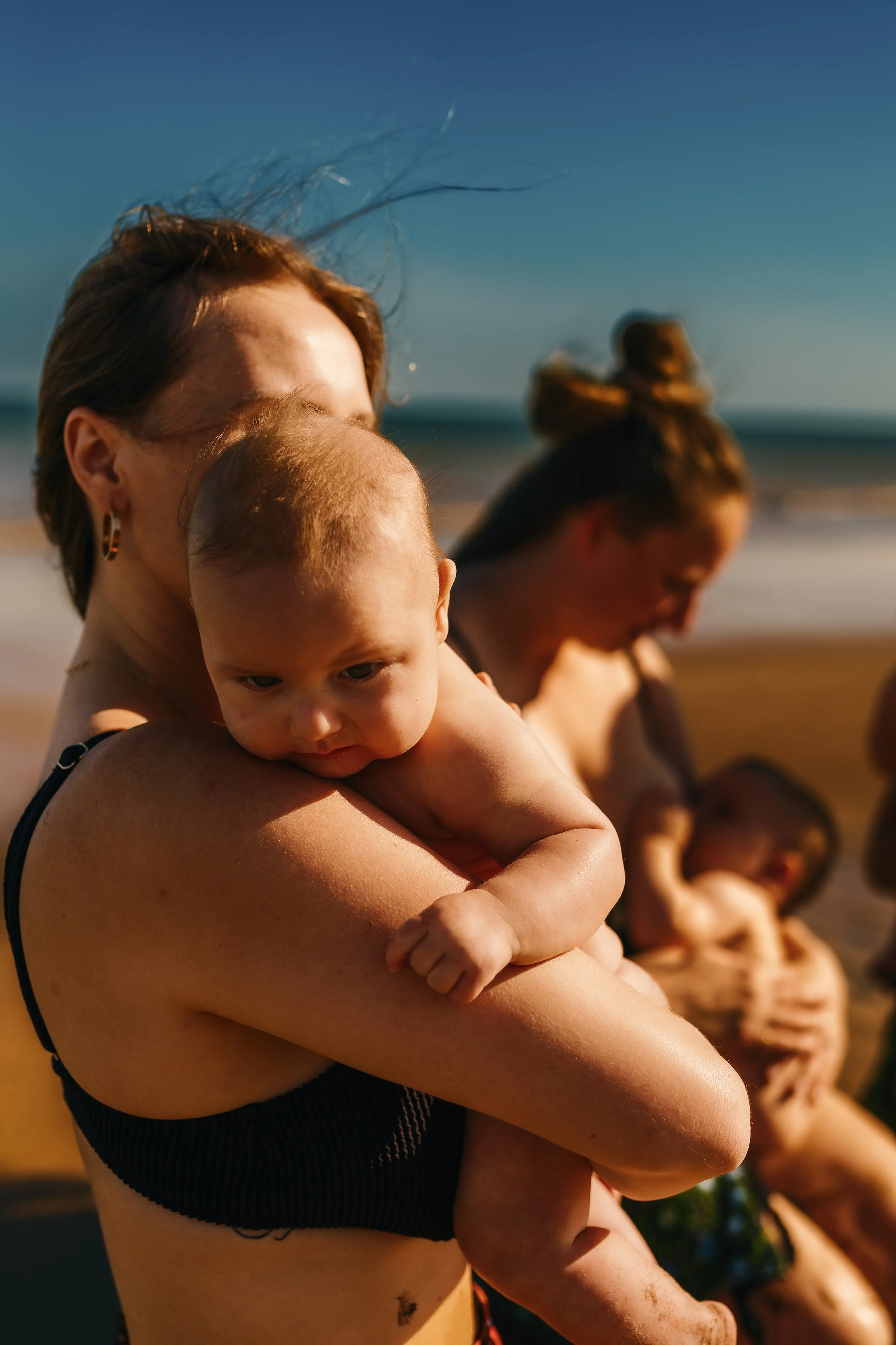 A week later, Part Two took us to the shores of Casuarina Beach, where more than twenty mothers gathered at sunset. With the salt air on our skin and the waves rolling in, the portraits became something wilder — a reflection of the untamed, resilient spirit of mothers. There, by the water’s edge, we held space for both the softness and the strength, the calm and the chaos that this journey carries.