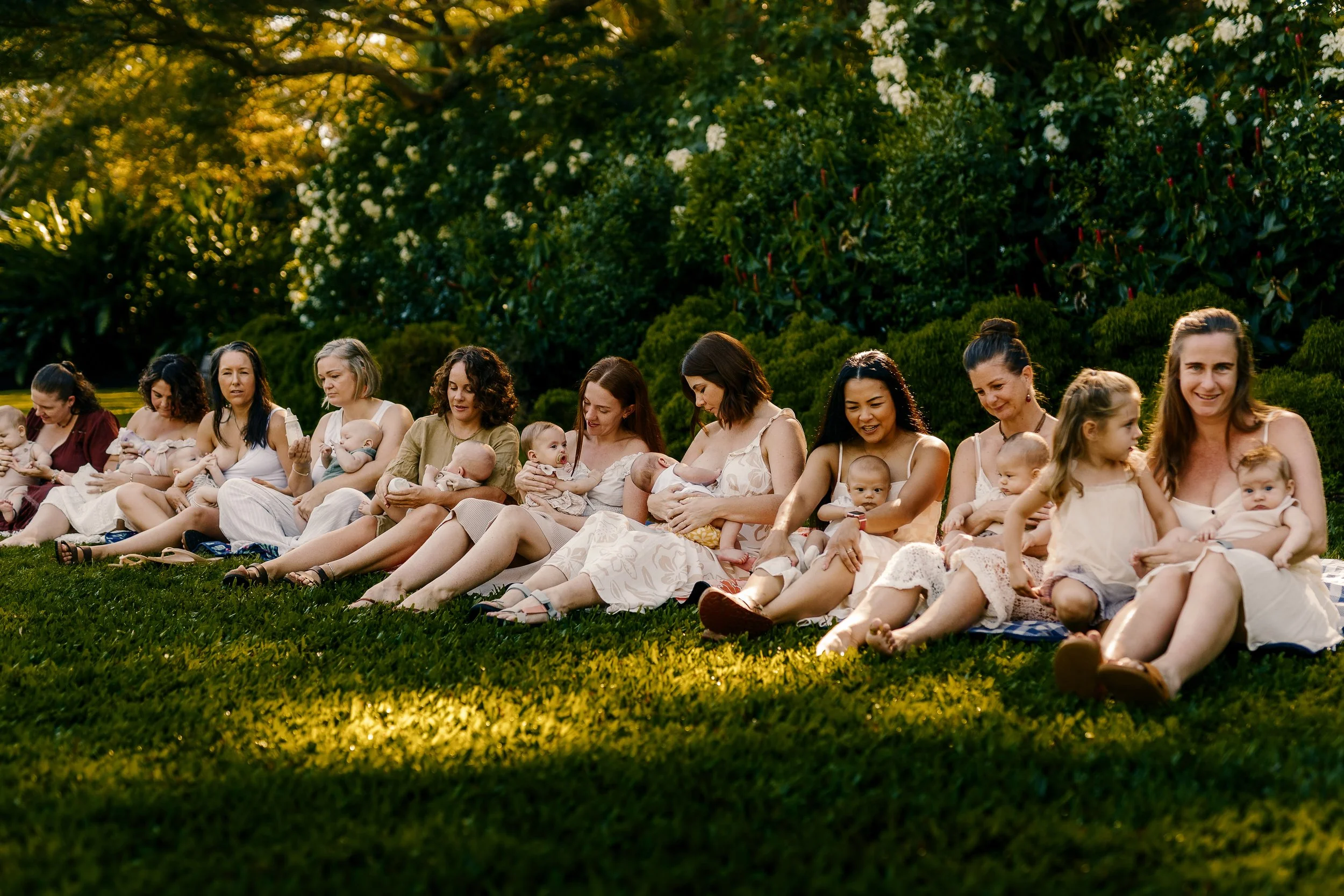 Part One unfolded at Jingili Water Gardens, where over thirty mothers and their little ones came together beneath the trees. Laughter carried across the grass, babies were cradled close, and friendships bloomed as we documented the quiet strength and tenderness that lives within motherhood. It was less about posing, and more about simply being — surrounded by community, and witnessed in all the small, powerful ways we nurture.